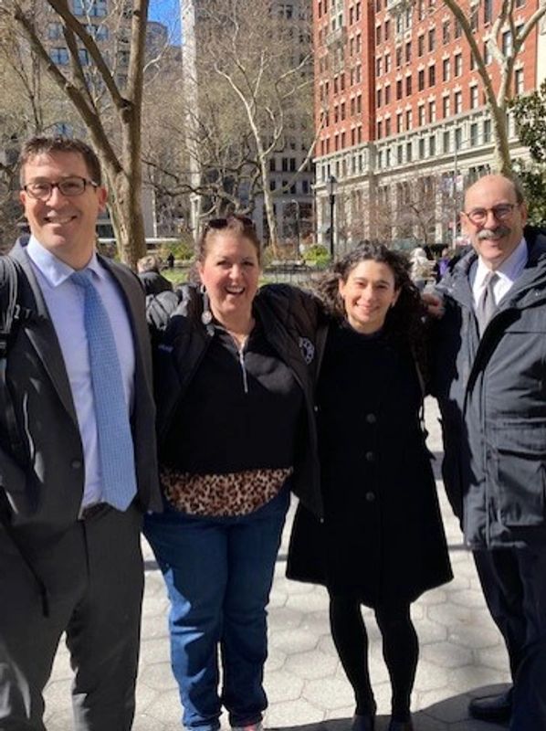 Left to Right: Jake Gardener, Marianne Pizzitola, Jake's Assistant; Hanna and Steve Cohen who is on the Law Team for Marianne and the NYC Retirees.,